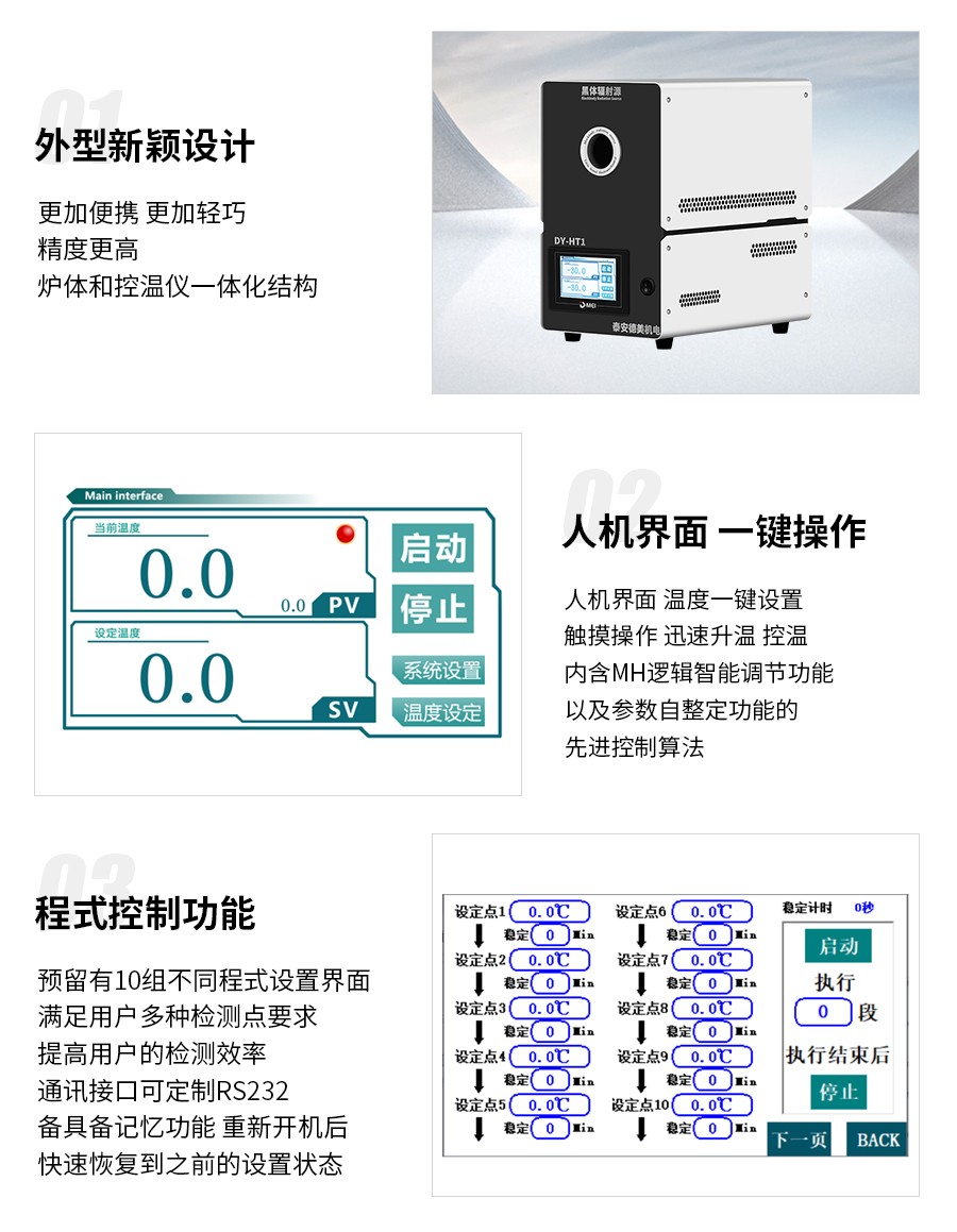 8)程式控制功能,設(shè)備預(yù)留有10組不同程式設(shè)置界面,一鍵操作,方便快捷,滿足用戶多種檢測(cè)點(diǎn)要求,提高用戶的檢測(cè)效率。