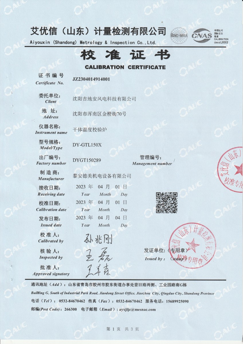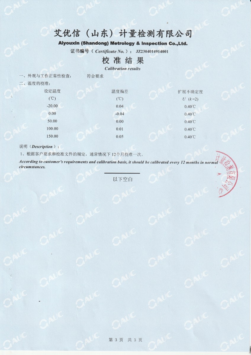| 上一條:開封光利高科實業(yè)有限責(zé)任公司送變電公司 變壓器溫度計校驗裝置 校準(zhǔn)證書(2) | 下一條:水三相點瓶凍制與保存裝置校準(zhǔn)證書 |