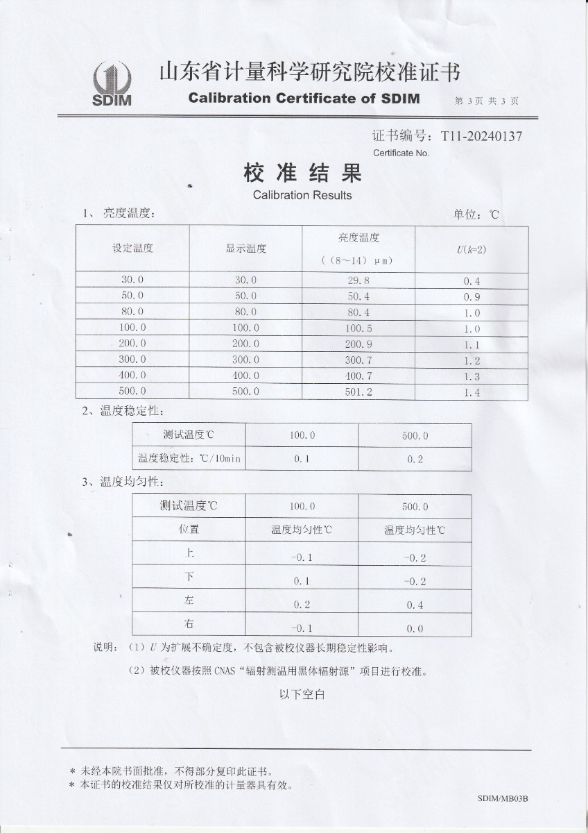 面源黑體爐校準(zhǔn)證書 2024-3-27 本文被閱讀 6866 次