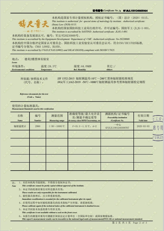 | 上一條:腔式黑體輻射源(300-1200℃)304所證書 | 下一條:水三相點(diǎn)瓶凍制與保存裝置校準(zhǔn)證書 |
