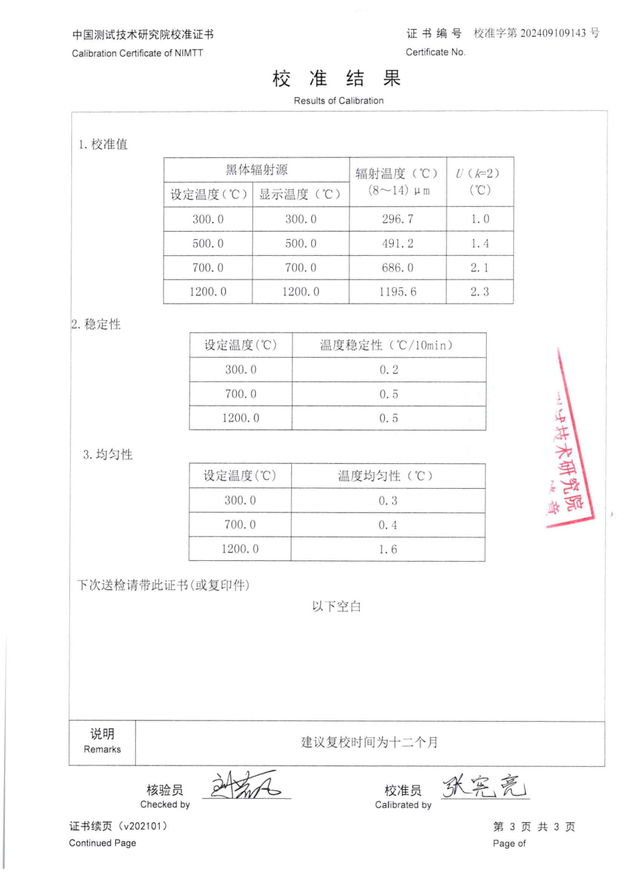 | 上一條:150面黑體校準(zhǔn)證書(shū) | 下一條:水三相點(diǎn)瓶?jī)鲋婆c保存裝置校準(zhǔn)證書(shū) |