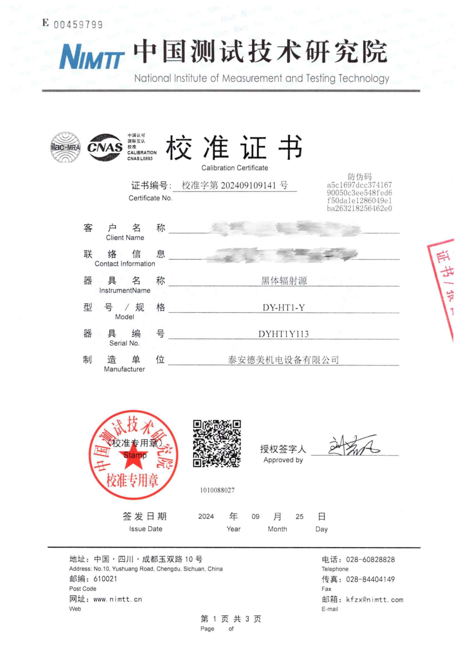 浴式黑體校準(zhǔn)證書 2024-10-21 本文被閱讀 8060 次