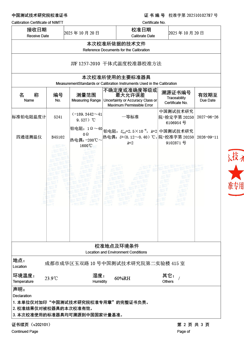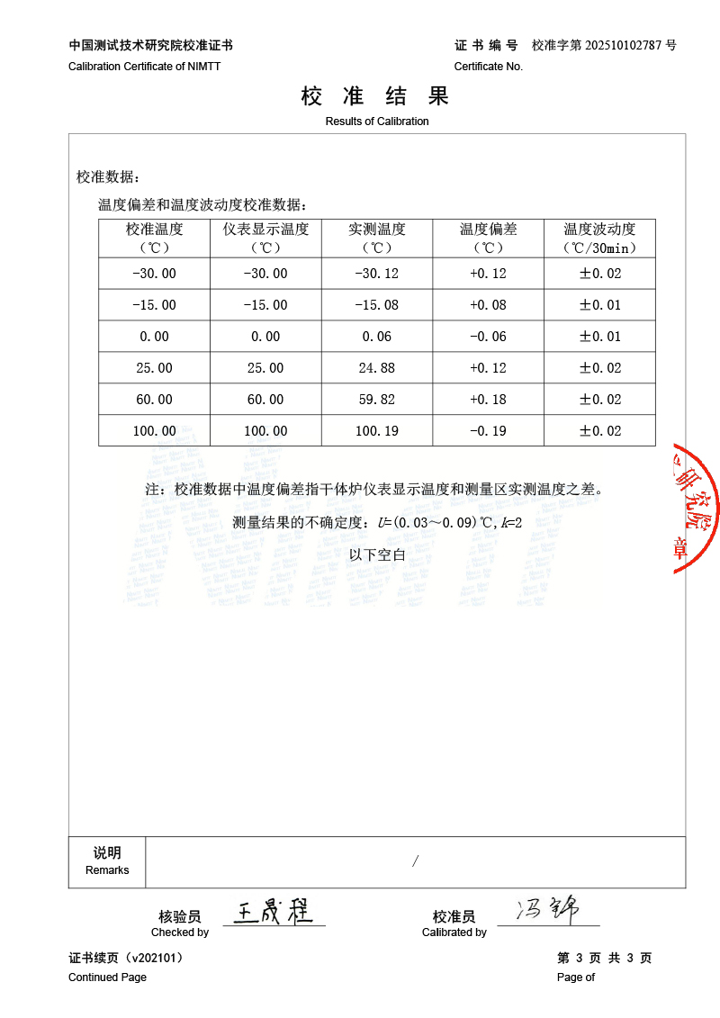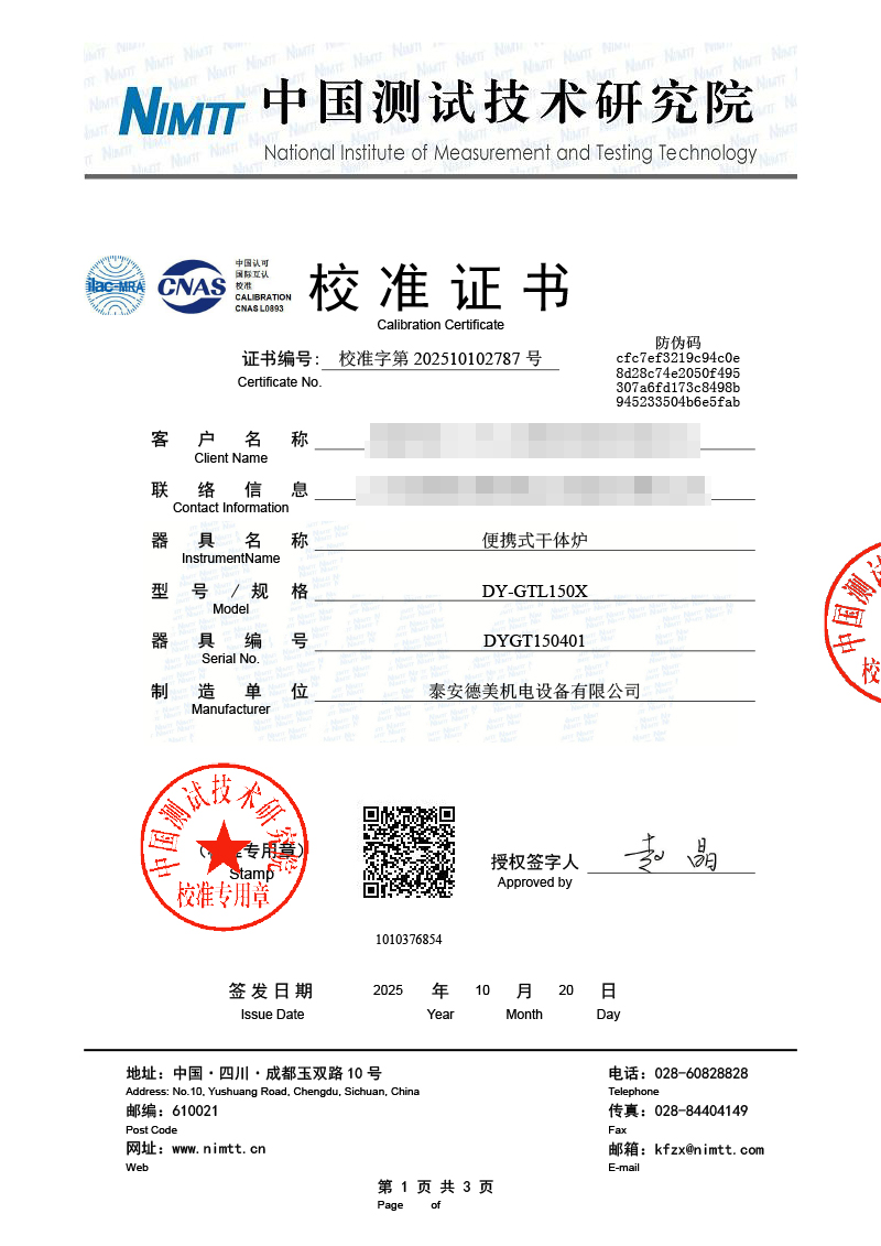 便攜式干體爐(-30-150℃)校準證書 2025-10-21 本文被閱讀 1966 次