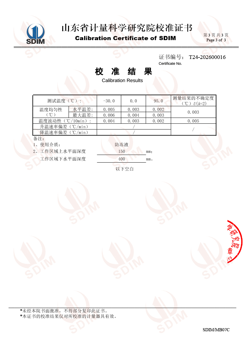 高精度制冷恒溫槽(-30~95℃)校準(zhǔn)證書