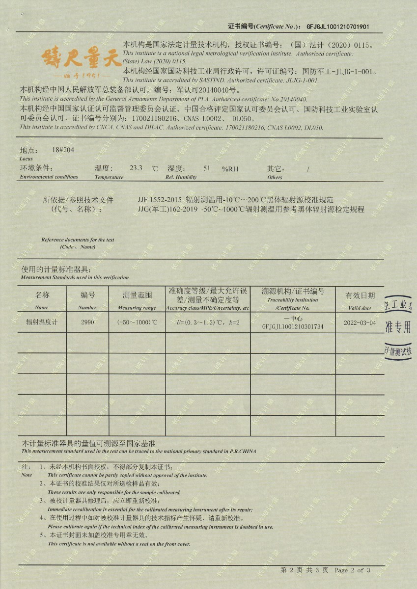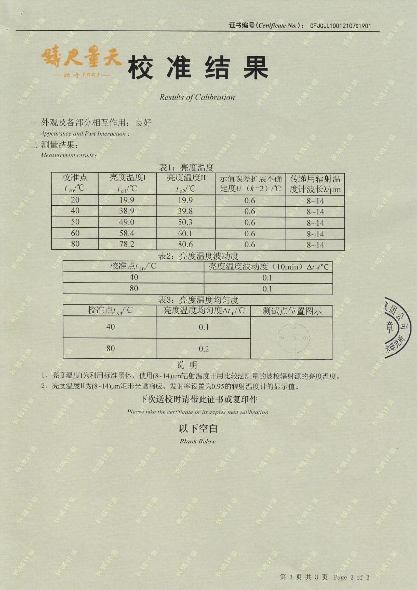 | 上一條:山東博測計(jì)量檢測技術(shù)有限公司-黑體輻射源 | 下一條:水三相點(diǎn)瓶凍制與保存裝置校準(zhǔn)證書 |