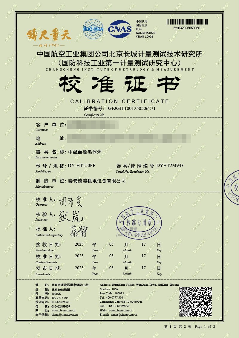 | 上一條:浴式黑體輻射源(-30-80℃)校準(zhǔn)證書 | 下一條:水三相點(diǎn)瓶凍制與保存裝置校準(zhǔn)證書 |
