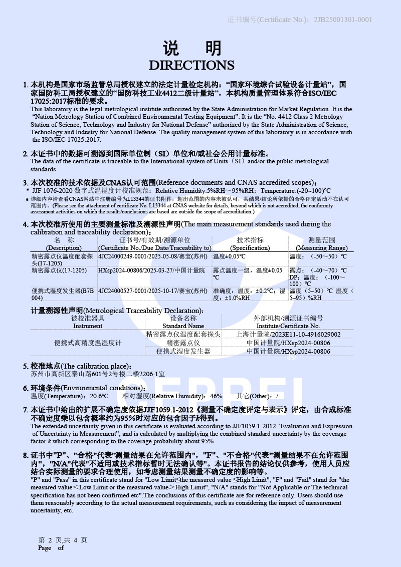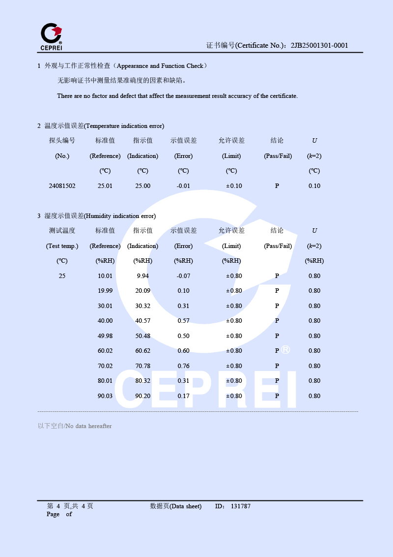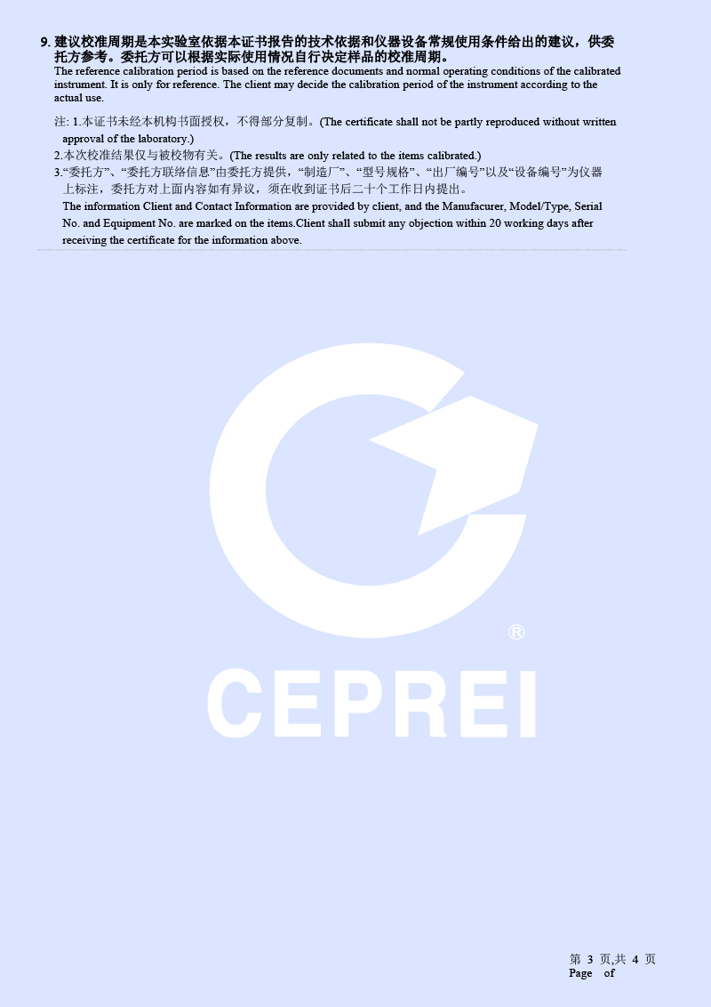 | 上一條:中溫面源黑體爐(室溫+5-500℃)校準證書 | 下一條:水三相點瓶凍制與保存裝置校準證書 |