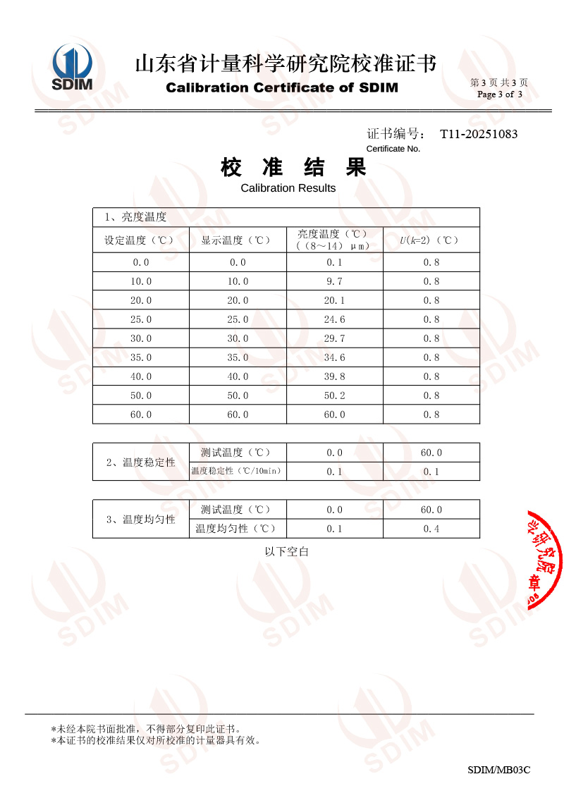 低溫面源黑體爐(0-60℃)校準(zhǔn)證書(shū)