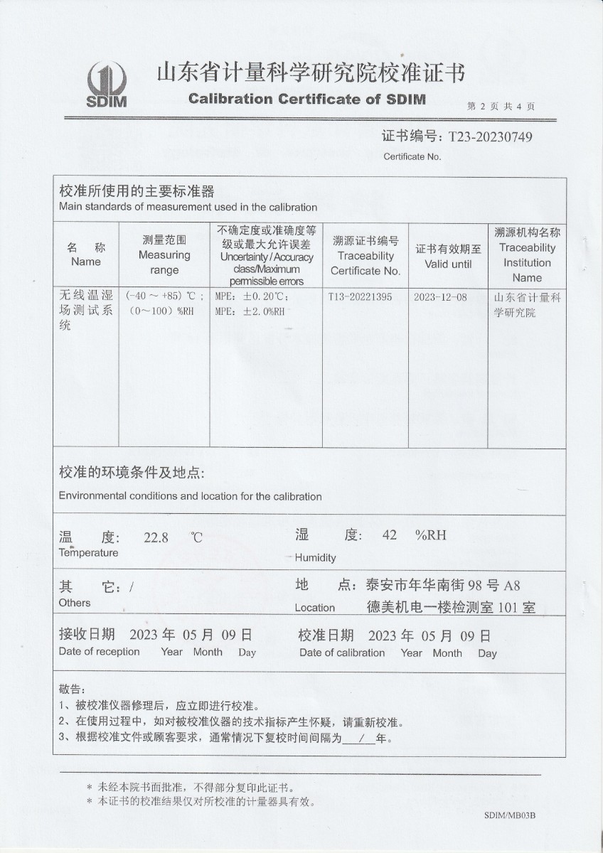 上一條:越南晶科能源實業(yè)有限責任公司 溫濕度標準箱 校準證書下一條:水三相點瓶凍制與保存裝置校準證書