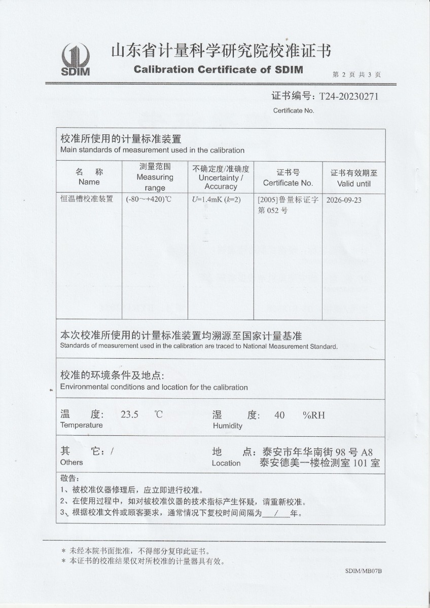 上一條:新疆中測測試有限公司 溫濕度標準箱 校準證書下一條:水三相點瓶凍制與保存裝置校準證書