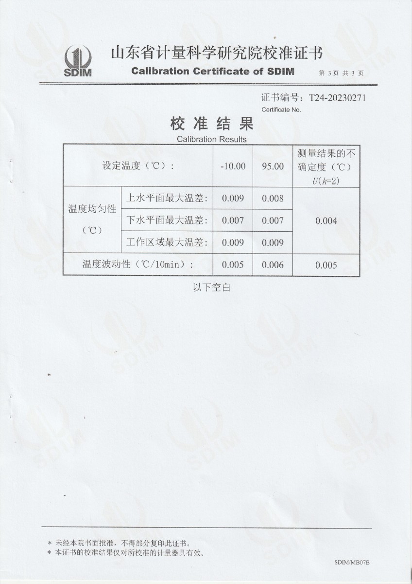 魯南中聯(lián)水泥有限公司 便攜式制冷恒溫槽 校準證書