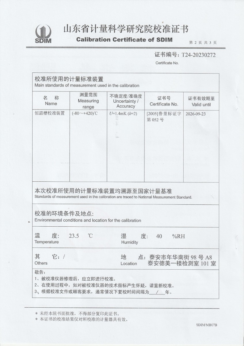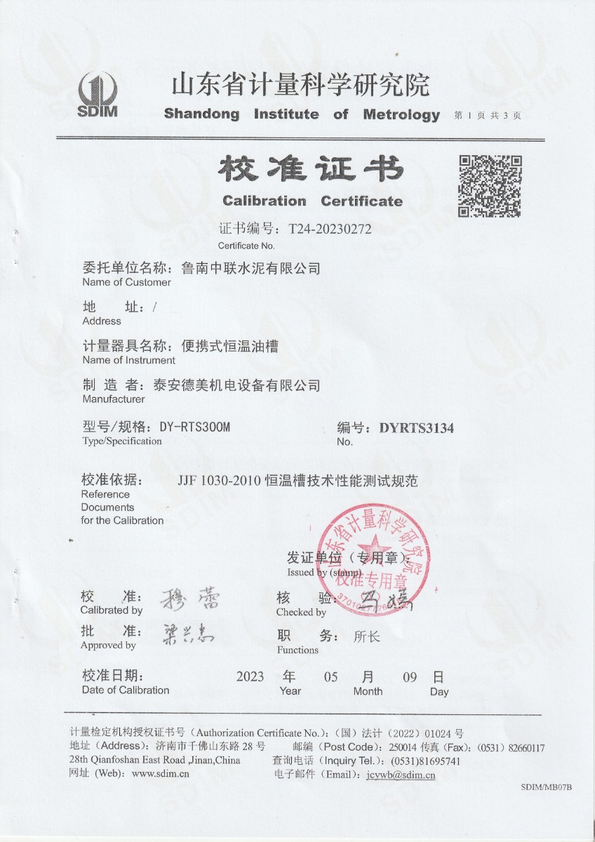 | 上一條:魯南中聯(lián)水泥有限公司 便攜式制冷恒溫槽 校準(zhǔn)證書(shū) | 下一條:水三相點(diǎn)瓶?jī)鲋婆c保存裝置校準(zhǔn)證書(shū) |