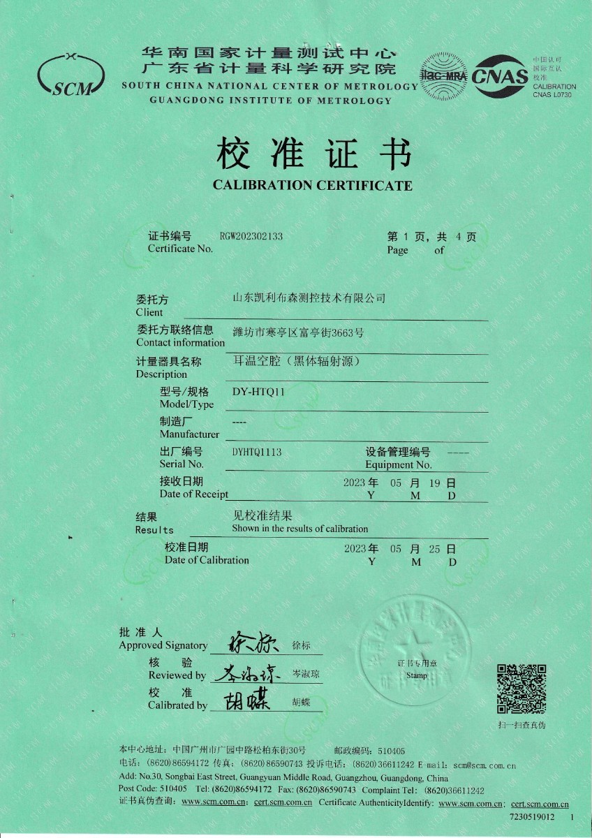 | 上一條:山東凱利布森測控技術(shù)有限公司 額溫空腔(黑體輻射源) 校準(zhǔn)證書 | 下一條:水三相點(diǎn)瓶凍制與保存裝置校準(zhǔn)證書 |