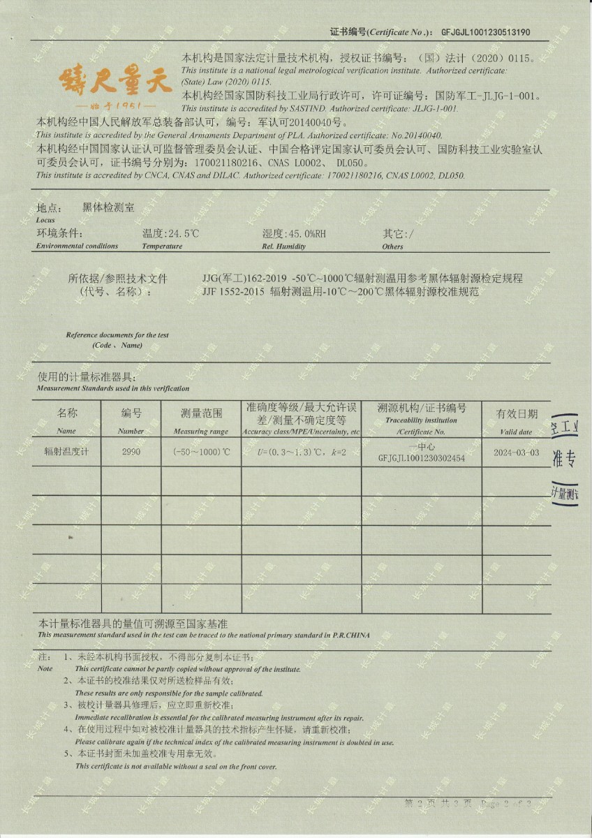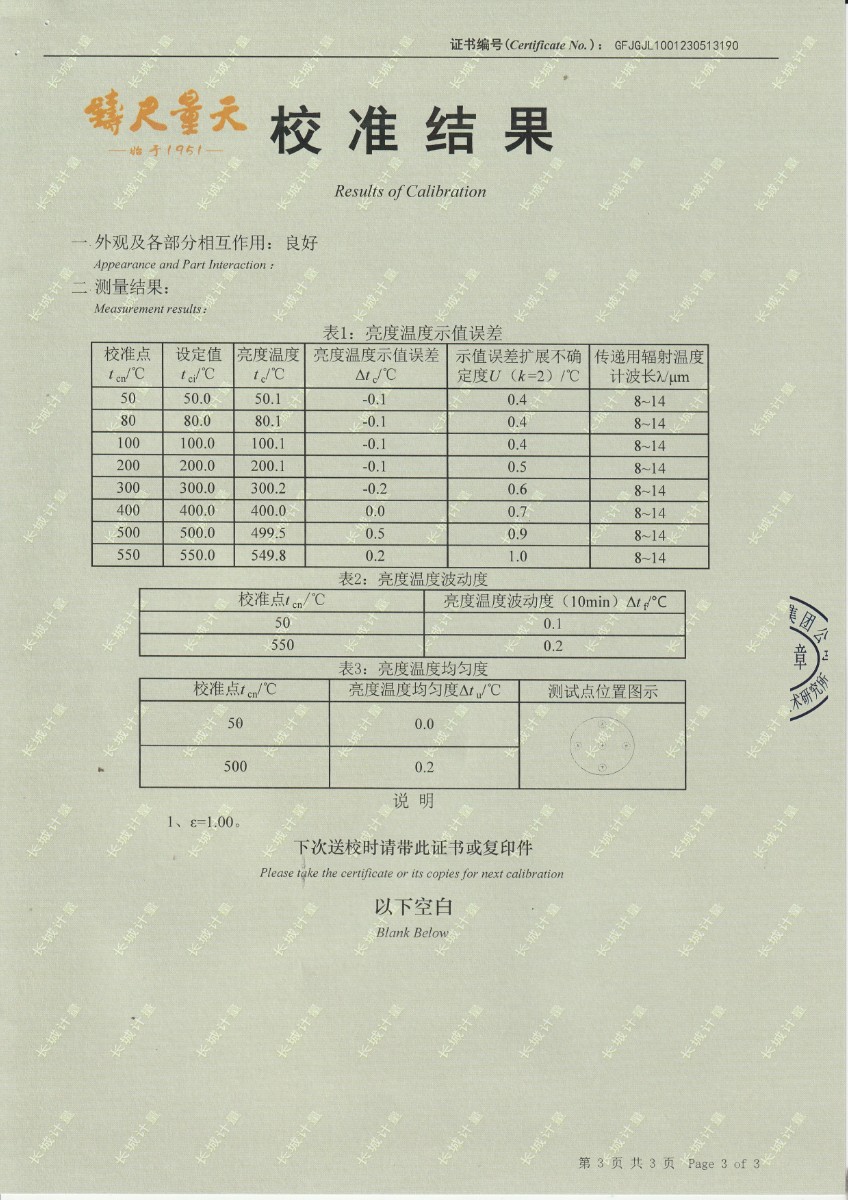 | 上一條:山東凱利布森測(cè)控技術(shù)有限公司 耳溫空腔(黑體輻射源) 校準(zhǔn)證書(shū) | 下一條:水三相點(diǎn)瓶?jī)鲋婆c保存裝置校準(zhǔn)證書(shū) |