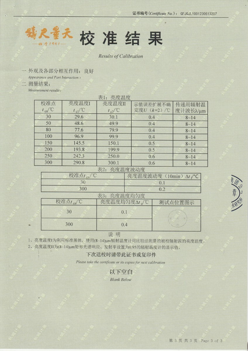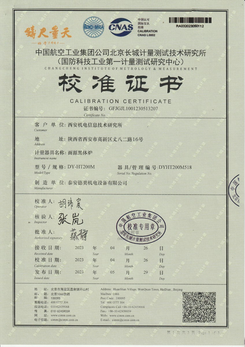 西安機(jī)電信息技術(shù)研究所 面源黑體校準(zhǔn)證書 2023-6-5 本文被閱讀 19366 次