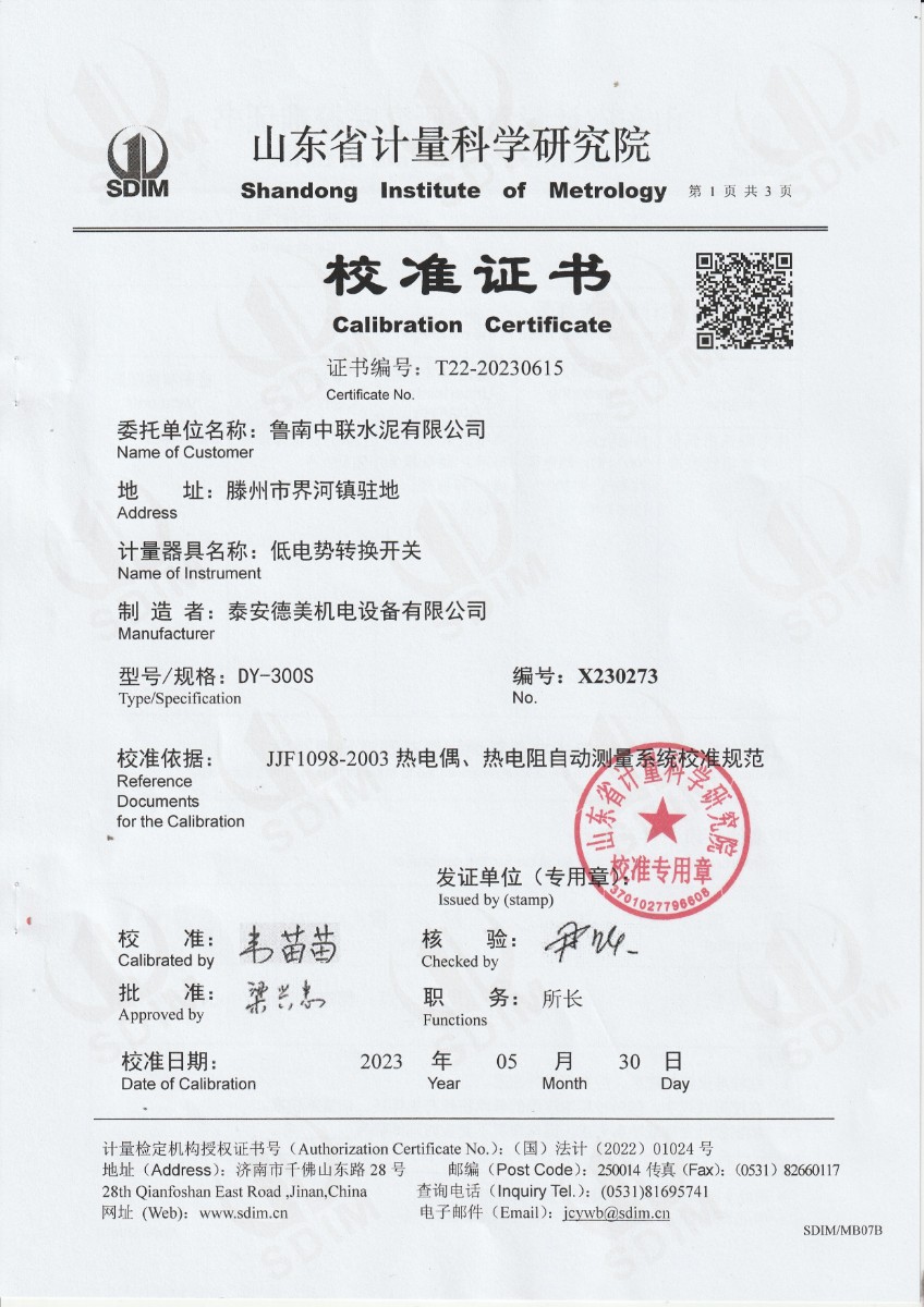 魯南中聯(lián)水泥有新公司-低電勢轉換開關