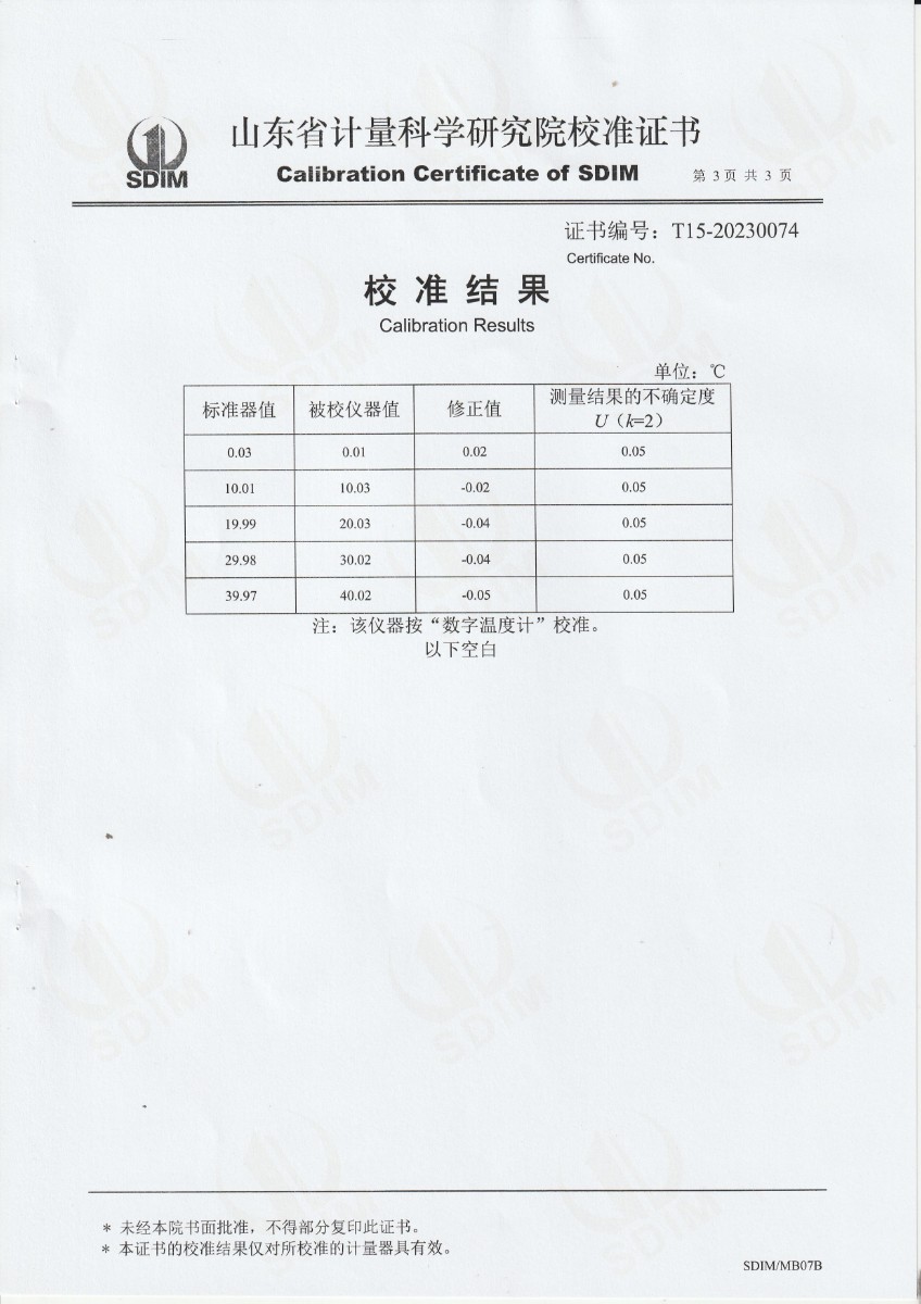 | 上一條:鹽城熱電有限責(zé)任公司-零點恒溫器 | 下一條:水三相點瓶凍制與保存裝置校準(zhǔn)證書 |