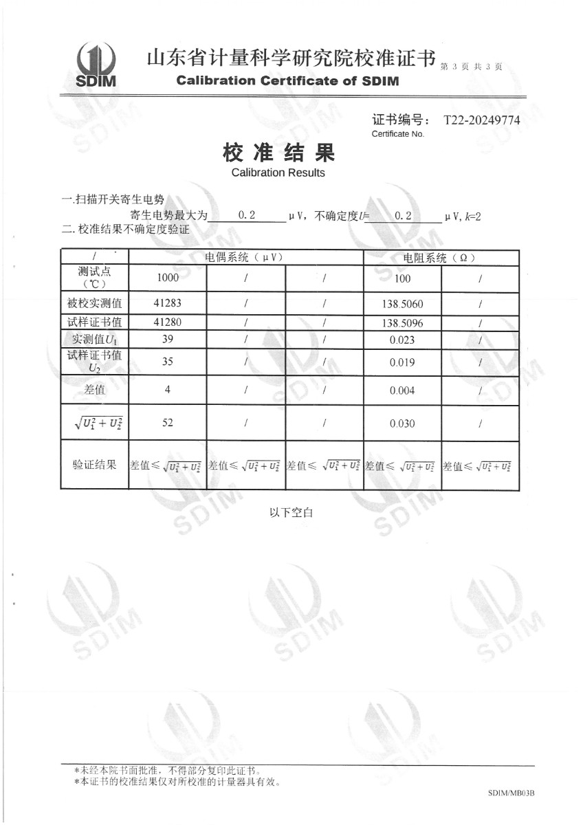 | 上一條:中溫干體爐296(50~650℃)校準(zhǔn)證書(shū) | 下一條:水三相點(diǎn)瓶?jī)鲋婆c保存裝置校準(zhǔn)證書(shū) |
