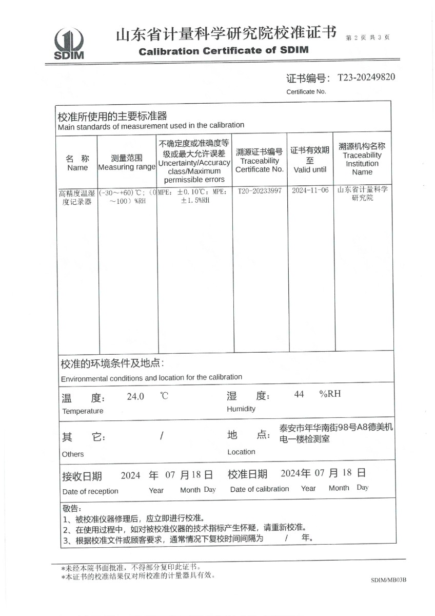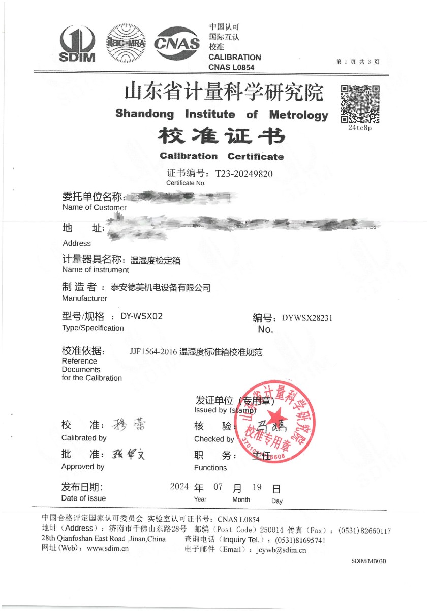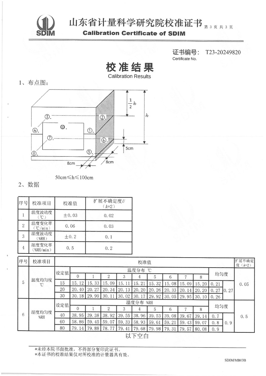 溫濕度檢定箱(-20~70℃)校準證書 2024-7-20 本文被閱讀 8096 次