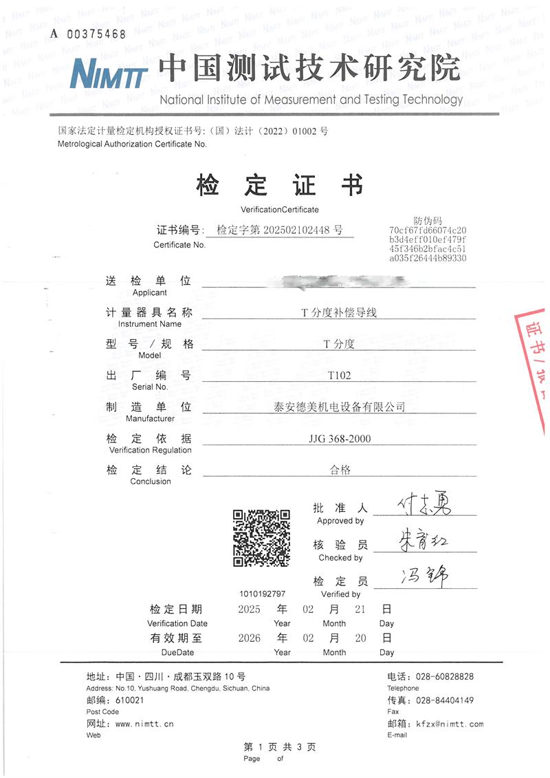 | 上一條:S分度補(bǔ)償導(dǎo)線檢測(cè)報(bào)告 | 下一條:水三相點(diǎn)瓶?jī)鲋婆c保存裝置校準(zhǔn)證書(shū) |