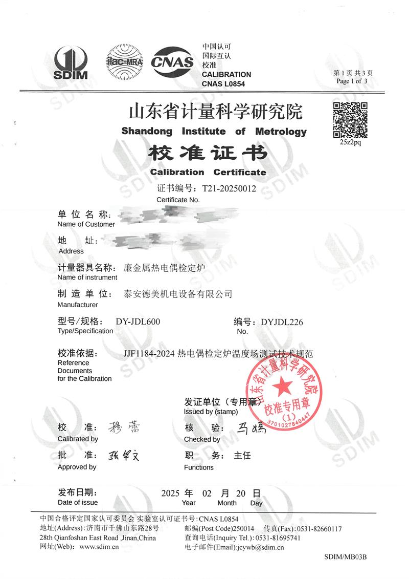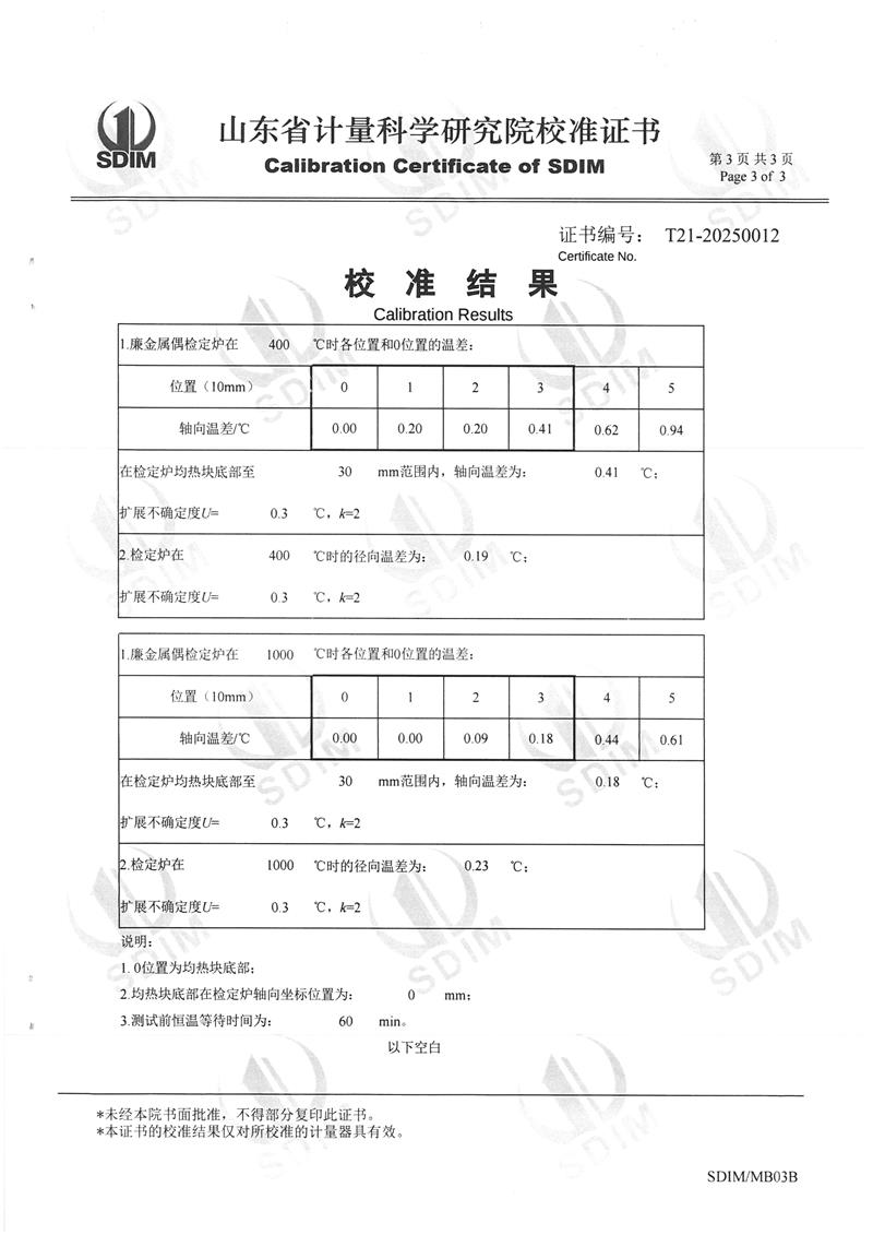 | 上一條:熱電阻、熱電偶自動(dòng)檢定系統(tǒng)校準(zhǔn)證書 | 下一條:水三相點(diǎn)瓶凍制與保存裝置校準(zhǔn)證書 |