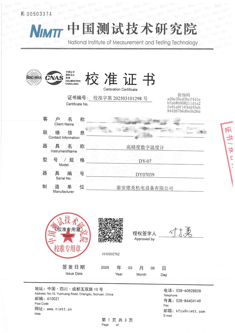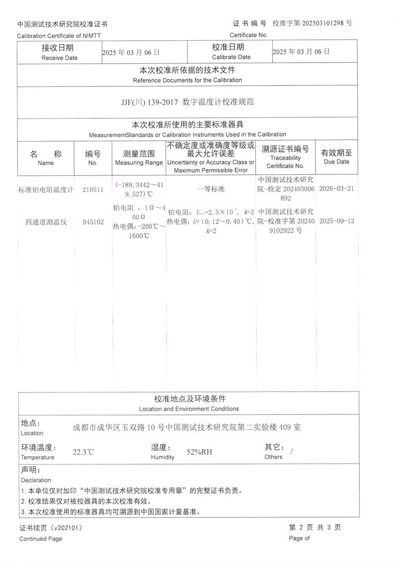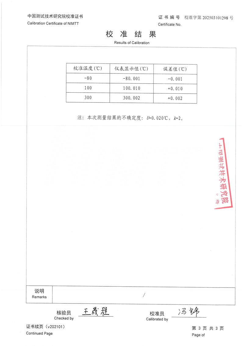 高精度數(shù)字溫度計(jì)(-80~300℃)校準(zhǔn)證書(shū) 2025-3-10 本文被閱讀 4556 次