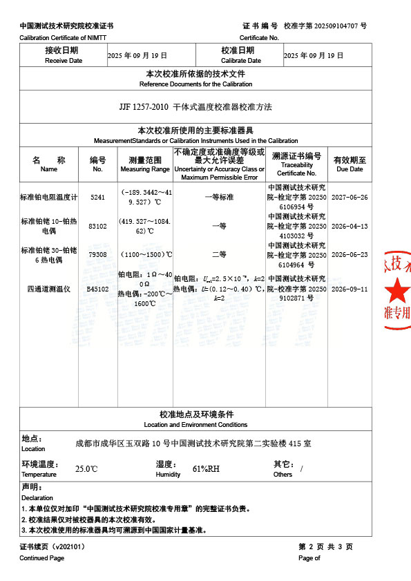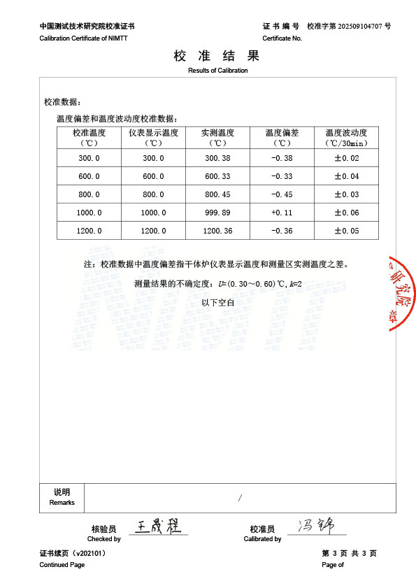 | 上一條:黑體輻射源(50-1200℃)校準(zhǔn)證書 | 下一條:水三相點瓶凍制與保存裝置校準(zhǔn)證書 |