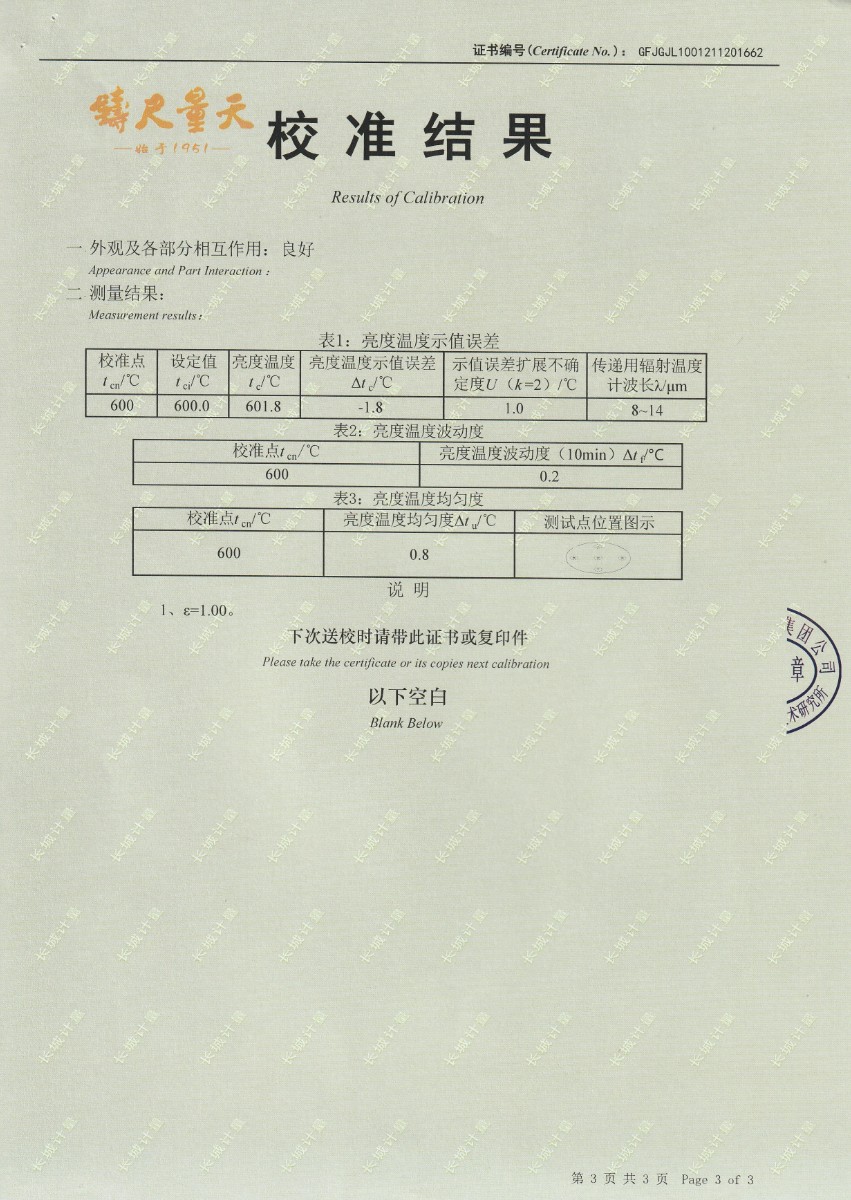 | 上一條:南京理工大學(xué)-黑體輻射源校準(zhǔn)證書600-1200℃ | 下一條:水三相點(diǎn)瓶凍制與保存裝置校準(zhǔn)證書 |
