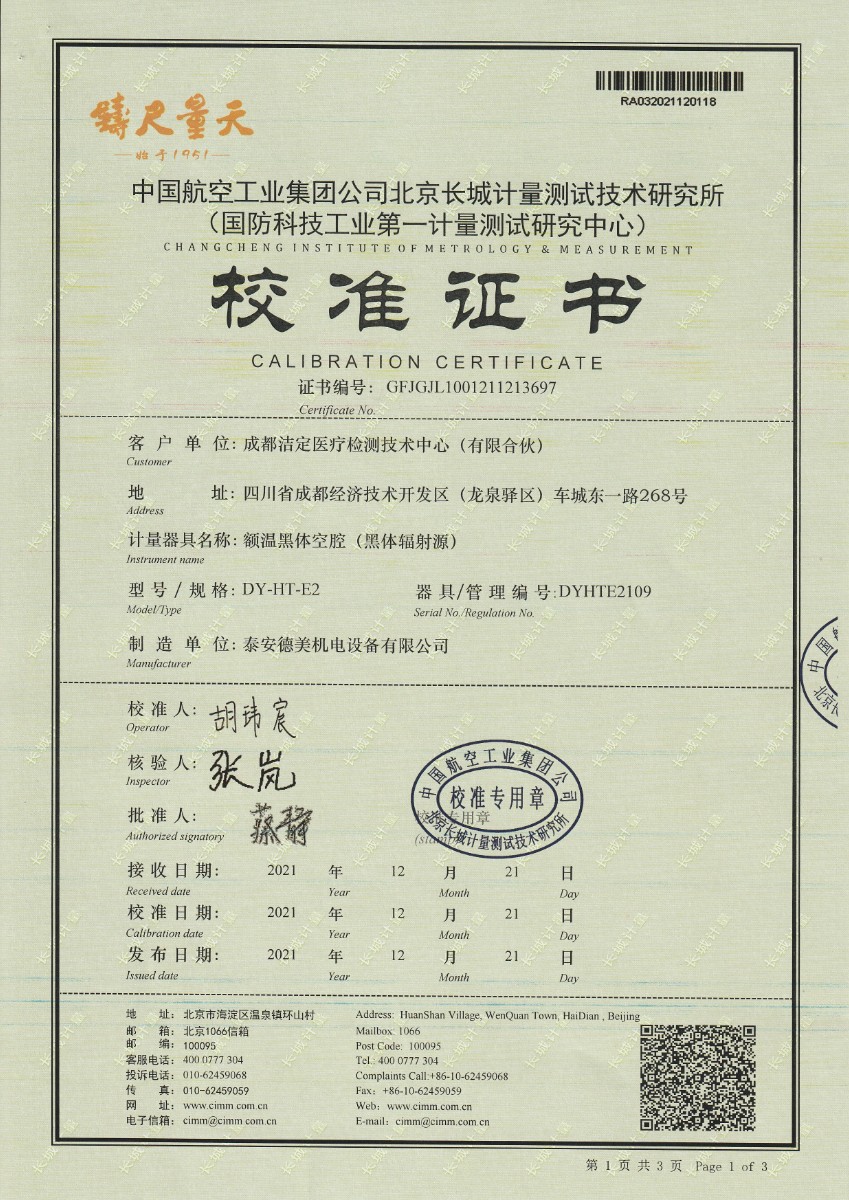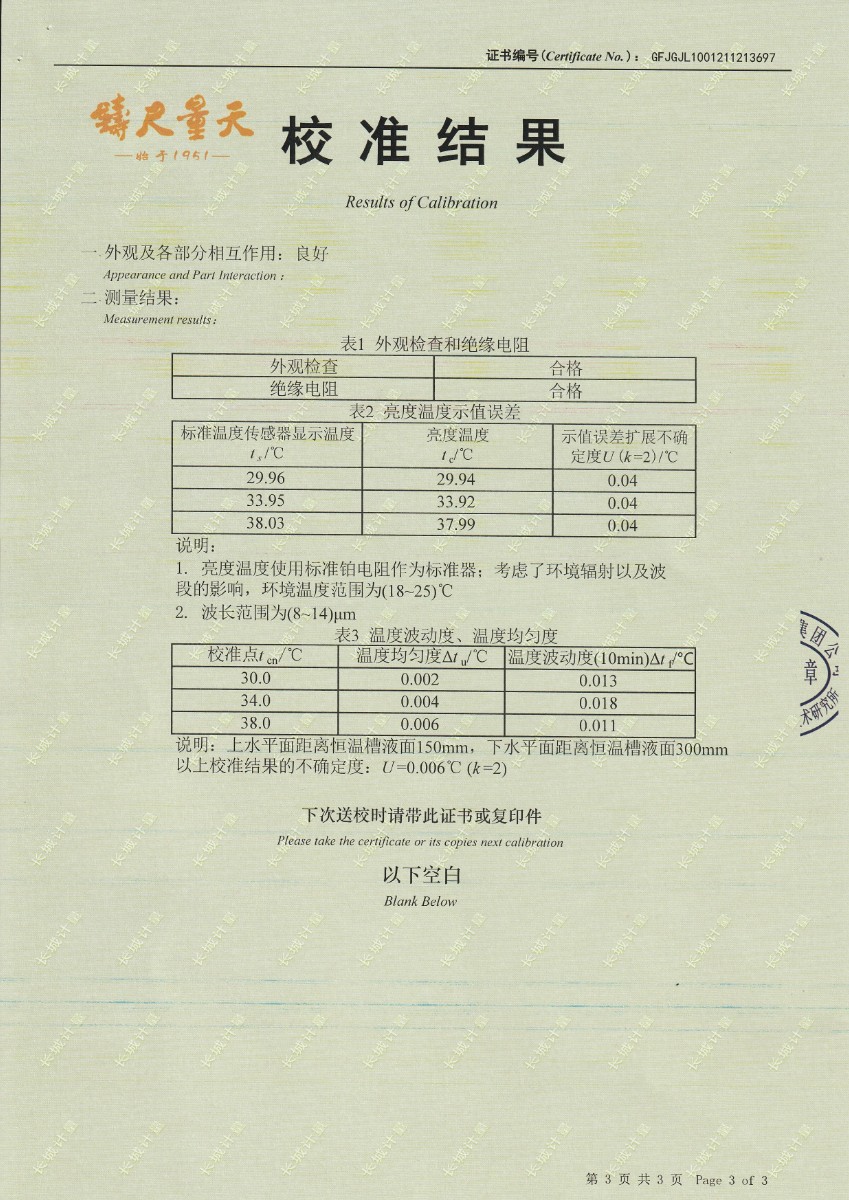| 上一條:安徽晶科能源有限公司-黑體輻射源 | 下一條:水三相點(diǎn)瓶?jī)鲋婆c保存裝置校準(zhǔn)證書(shū) |