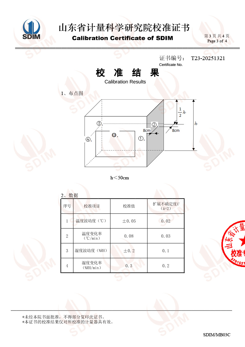便攜溫濕度檢定箱(5-50℃)校準證書