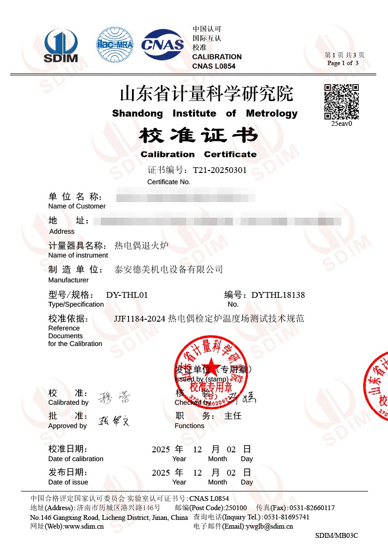 熱電偶退火爐校準證書 2025-12-4 本文被閱讀 993 次