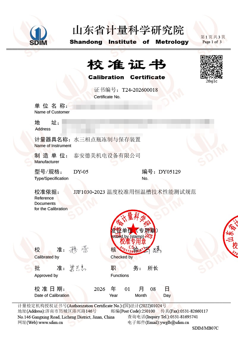 水三相點(diǎn)瓶?jī)鲋婆c保存裝置校準(zhǔn)證書 2026-1-13 本文被閱讀 45 次