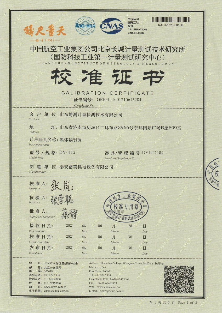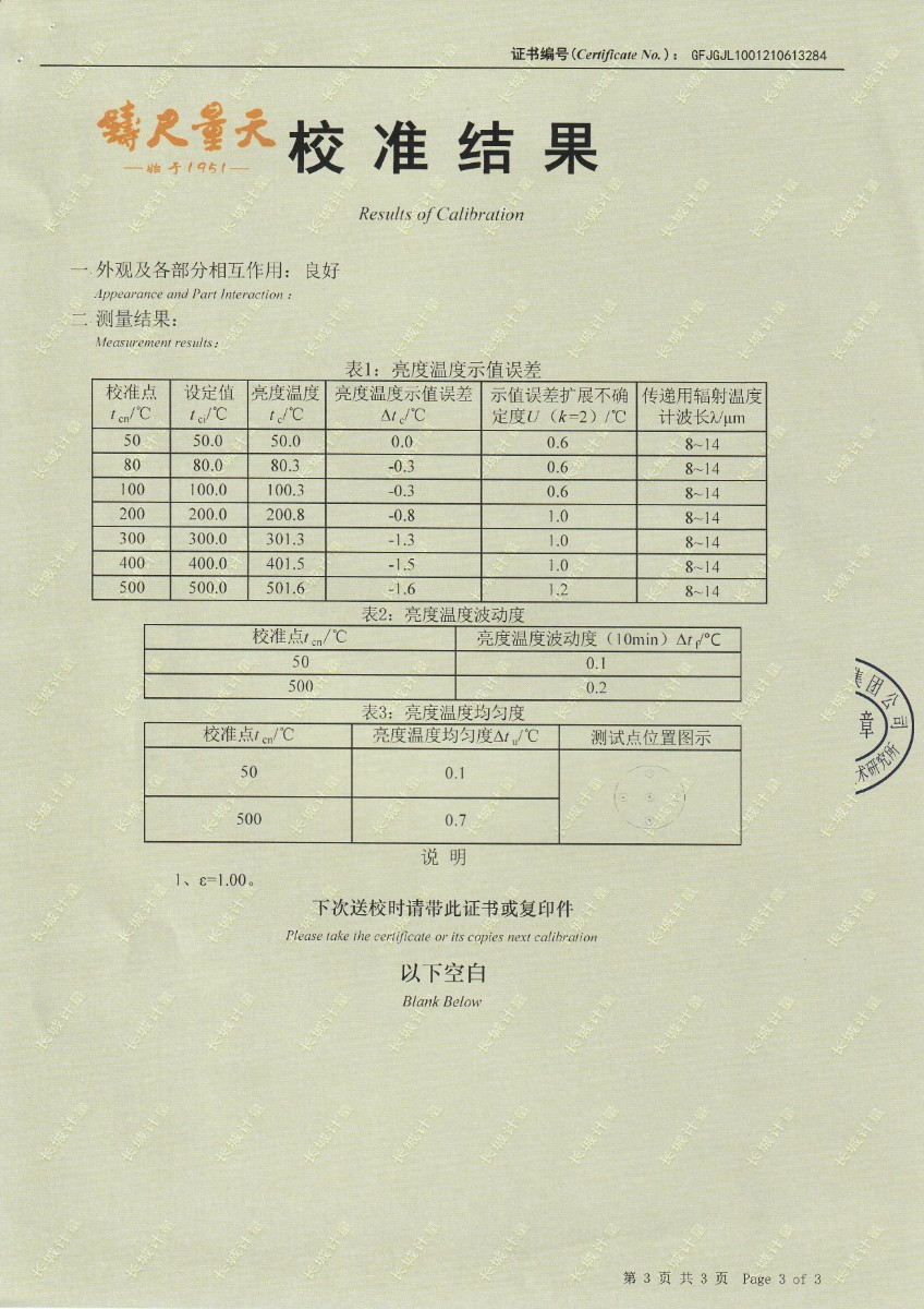 | 上一條:哈爾濱永創(chuàng)計量檢測有限公司-溫濕度檢定箱 | 下一條:水三相點瓶凍制與保存裝置校準(zhǔn)證書 |