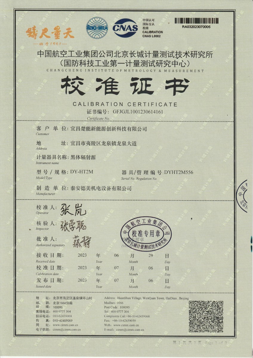 | 上一條:孝感楚能新能源創(chuàng)新科技有限公司-黑體輻射源 | 下一條:水三相點(diǎn)瓶?jī)鲋婆c保存裝置校準(zhǔn)證書 |