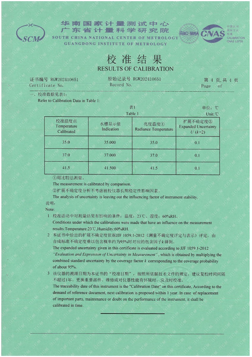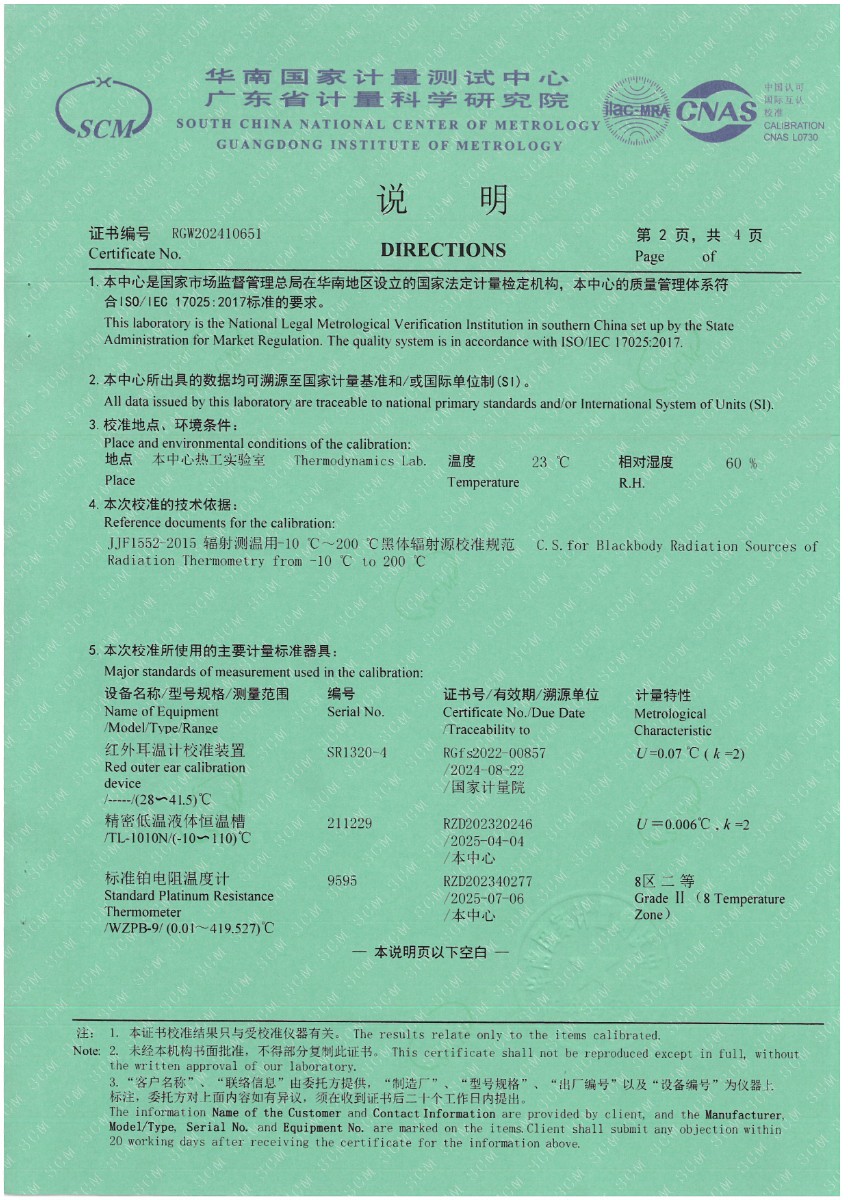耳溫空腔(黑體輻射源)校準證書 2024-5-27 本文被閱讀 6787 次