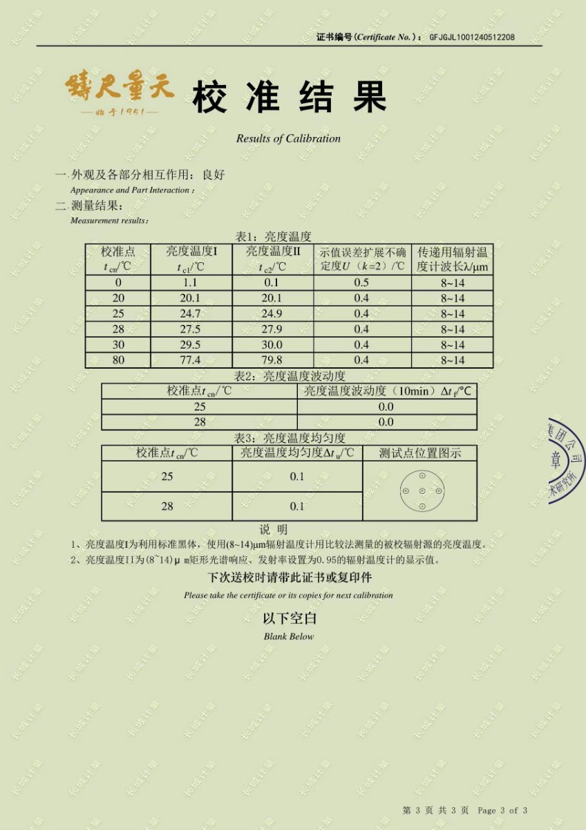 面源黑體爐校準證書 2024-5-31 本文被閱讀 7185 次
