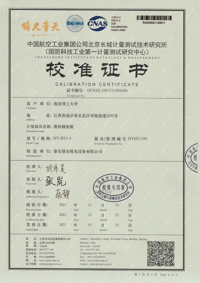 | 上一條:南京理工大學(xué)-黑體輻射源校準(zhǔn)證書(shū)10-60℃ | 下一條:水三相點(diǎn)瓶?jī)鲋婆c保存裝置校準(zhǔn)證書(shū) |